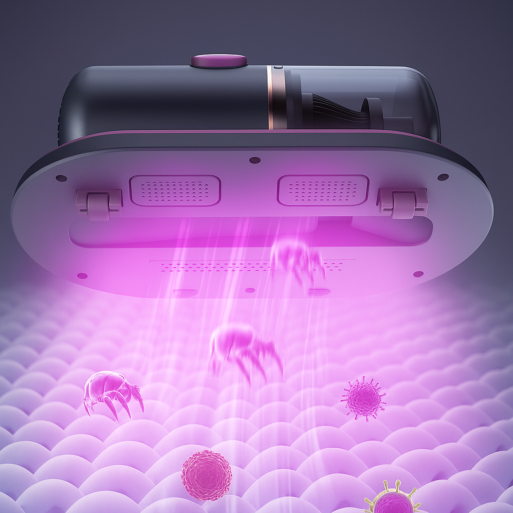 כמובן, השואב משלב טכנולוגיית UV-C מתקדמת, שמוכחת כיעילה נגד חיידקים, קרדיות אבק ווירוסים. זהו חיטוי אמיתי שמבצע ניקוי עמוק, לא רק שטחי.