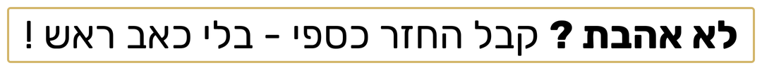 אנחנו מאמינים מאוד במוצרים שלנו, לכן אנחנו מעניקים לכם 30 ימי ניסיון - לא אהבתם? אין בעיה! קבלו החזר כספי בלי כאבי ראש. בכפוף לתקנון
